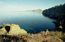 Bahia de Loreto protects 800 miles of coastline and islands off Baja's east coast. This area was formed when tectonic plates split, cracking open mountains and severing a part of Mexico from the mainland. This left behind a 1,000-mile-long finger-shaped stretch of land now known as Baja California and one of the planet's youngest seas. That was about 25 million years ago. Meanwhile, as the area was split open along the San Andreas Fault, there was intense volcanic activity, forming the mountains seen here today. Now, this quiet, protected area is a popular destination for overnight kayaking trips.